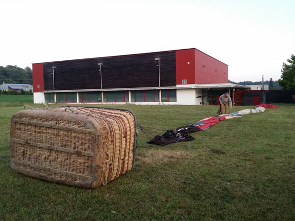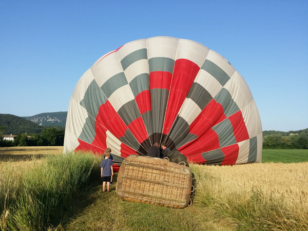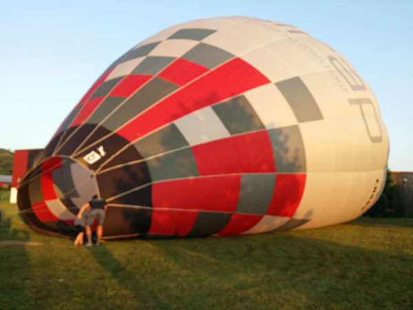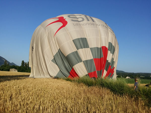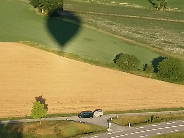 La voiture qui va nous récupérer est visible sous l'ombre de la mongolfière.