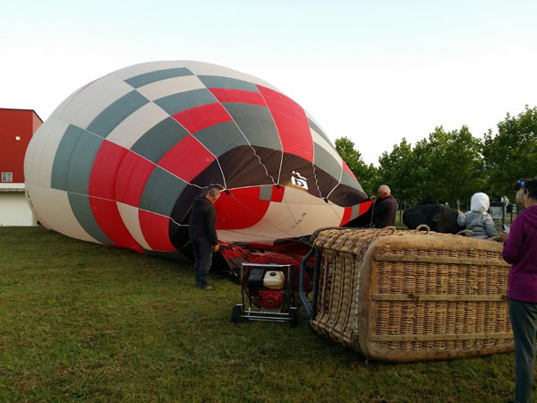 Le gonflage commence à l'air ambiant grâce au ventilateur thermique visible à côté de la nacelle.