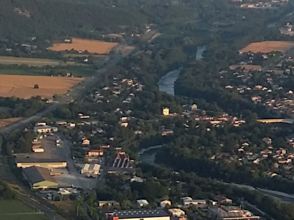 Après le décollage, vue sur Crest et son donjon le plus haut de France.