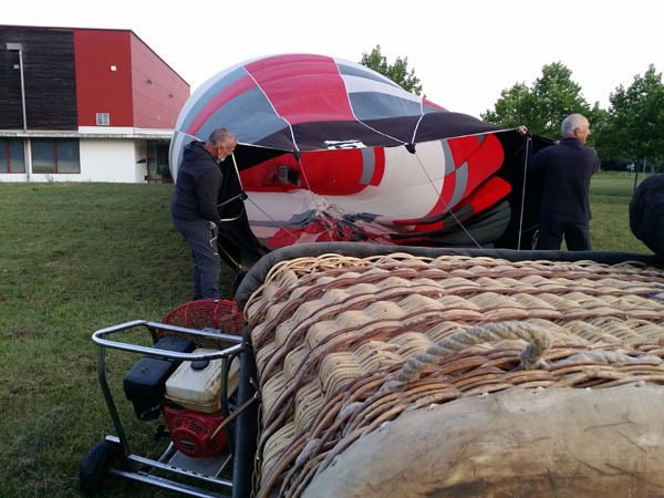 Le gonflage commence à l'air ambiant grâce au ventilateur thermique visible à côté de la nacelle.